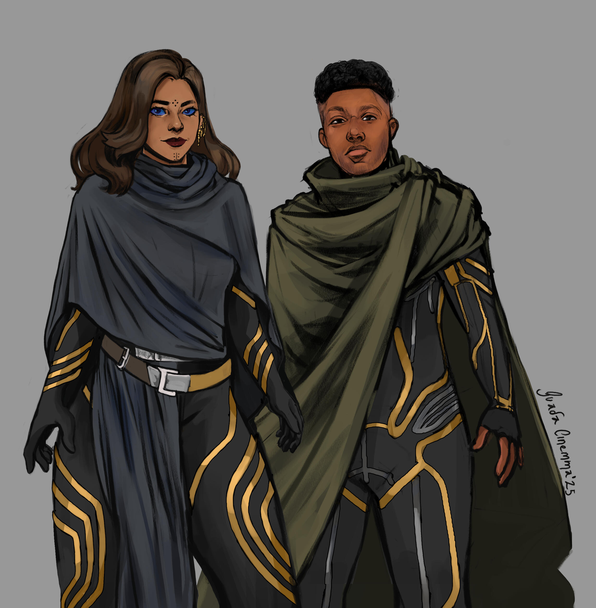 "The moons in Arrakis' sky hung in contrast to the night sky, and thus, Krelln and Arvon or The Hand of God and Muad'dib seemed to watch the steps of the exiled Bene Gesserit. Hurrying through the shadows of the city of Arrakeen, Luiza, encountered a distress that stirred a sandstorm around her thoughts and pulled her heart out to the desert sands."